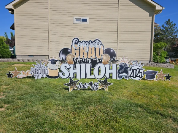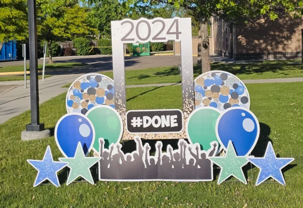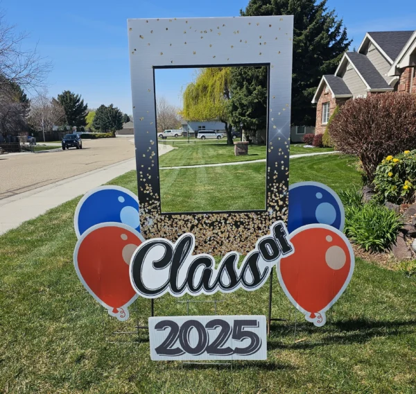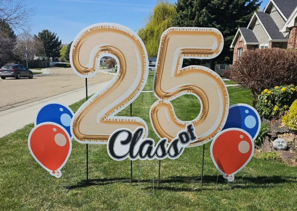 Our mega numbers are over 4′ tall! Options include Silver Glitter, Gold Foil, or Black for the graduation year of your choosing. Exact graphics will vary and will match the main sign. Subject to availability.
