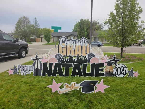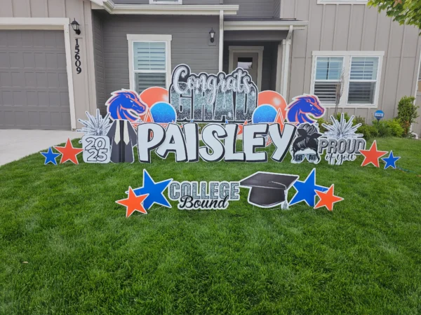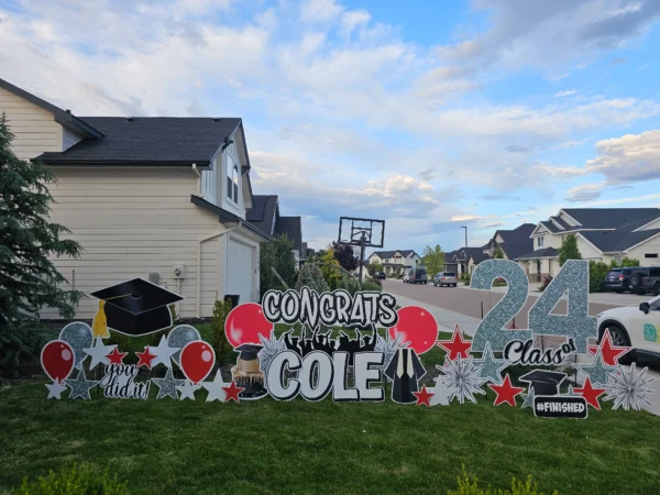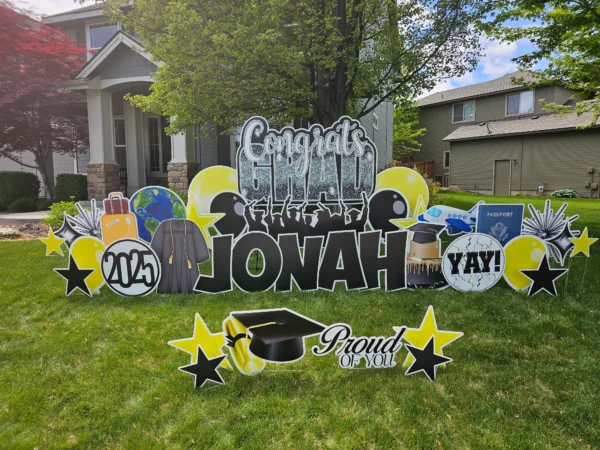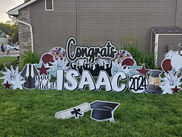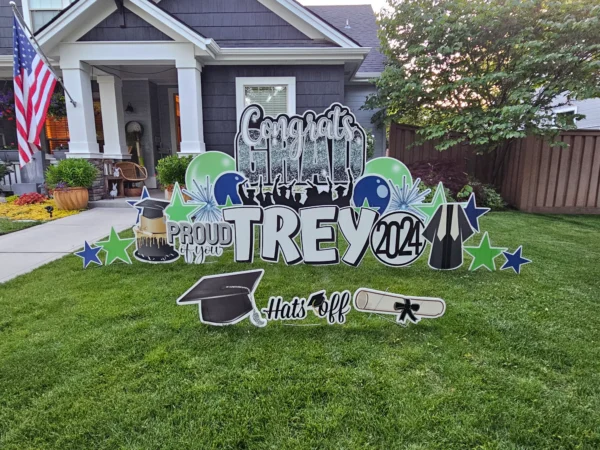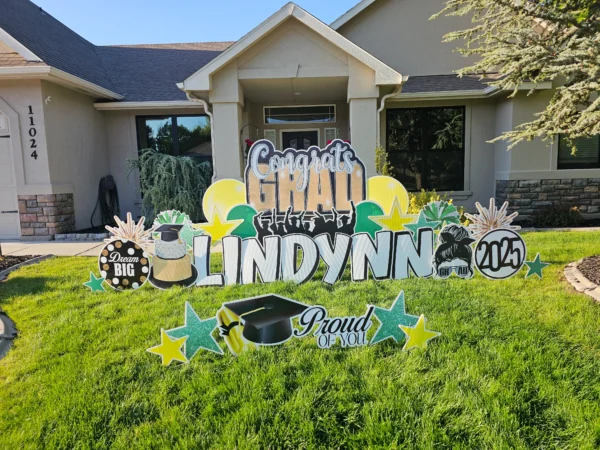 - Greeting may be modified due to yard size and condition. If you are unsure if your yard will accommodate the size greeting you’ve ordered, please email us ahead of time with a photo just so we can ensure you’ve selected an appropriate package.